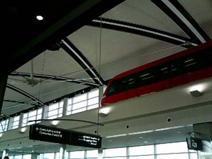 アメリカというのは、とにかく土地がただっぴろい為、空港を作る時も「こんだけ作っときゃバリバリ余裕だろ」サイズでまず作ってしまうわけですね。ハナから有り余ってるものですから、日本のように「これだけしかない土地を有効活用しよう」という観念がありません。んで、広すぎて人間の徒歩では不便だと気付くと、「じゃ、列車運行させれば不便じゃなくなるんじゃね?」と列車を走らせてしまう。しょっぱなからスケールの違いが露見されます。