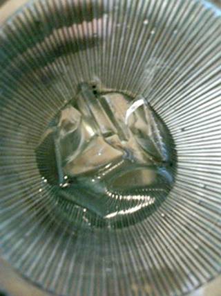 分かりにくいですが、氷の形が、カマボコ型の半円形。日本では、ほとんどが小粒の四角か、大粒の四角(中央に穴が開いている)のはず。どんな製氷機なんでしょうね?