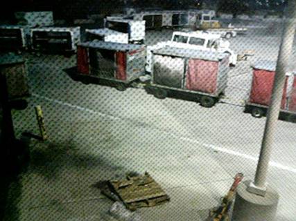 こっそり撮影した空港の裏方(↑)。空港で、車両が、列車みたいに連なってやがるという、考えてみればおもしろい風景。