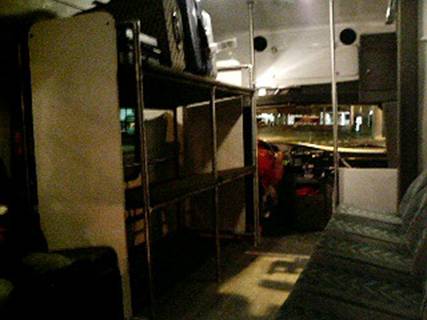 この左のやつ、2段ベッドでなく、荷物置きの棚です。だが寝かせろ! 眠くないけど記念に!