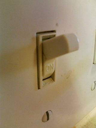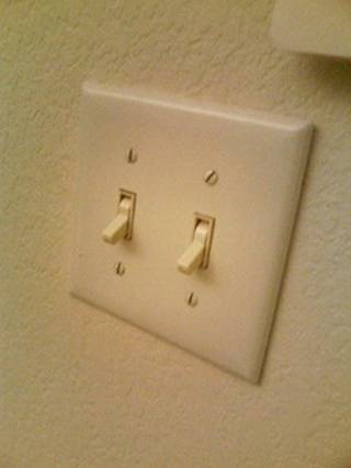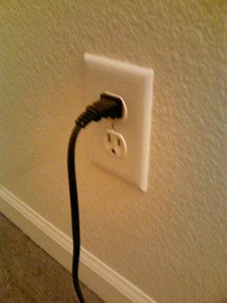 アメリカ仕様なコンセント。日本とは流れてる電圧が違うので、日本の家電製品を使うときは電圧変換機を介して使わなければ静かに壊れます。物静かに。死ぬ時くらい声高に自己主張してもバチは当たらないぜ!