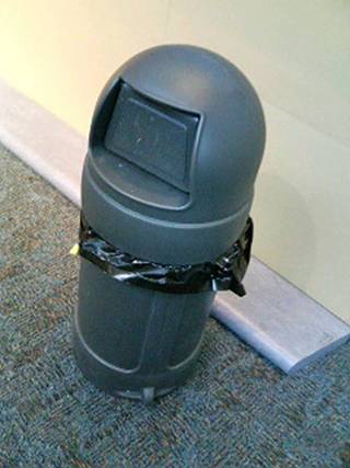 屋内ゴミ箱(↑)。四角いとこが爪に見えたら、もう親指としか考えられない。