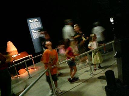 なんかアメリカのこういうの、日本みたいに地味じゃなくて分かりやすいですね。展示物の邪魔しないように影にひっそり潜んでるってつつしみがカケラもない。壁からべーんと主張してたり、床からにゅいーんって生えてたり。「俺は注意喚起が仕事だぜ。喚起するために目だって何が悪いってんだぜ」って感じで。