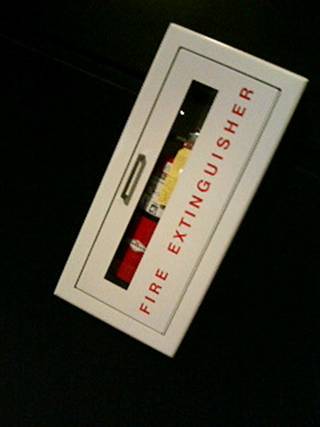 探してみたら、慎ましやかな消火器もありました(↑)。