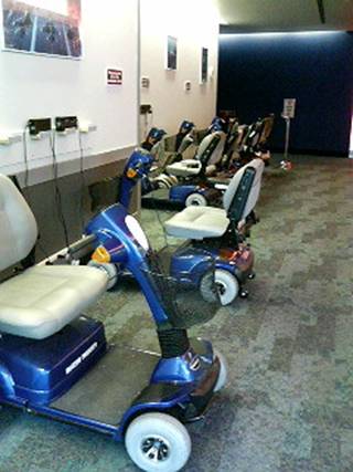 無料貸し出しシルバーカー。体重増えすぎでヒザとか痛めたりしてる人の数がハンパないらしくって、そんな人もどしどし見学して金を落として行きなヒヒヒという目論見です。いや。ヒヒヒって。
