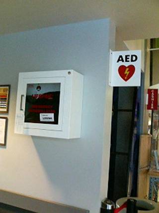 心臓病が多いお国柄、AEDだって完備してます(↑)。