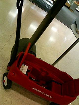 中に子供を積んでひっぱっていけるチャイルドカート(↑)。動力は親の人力。