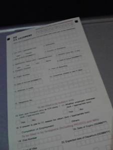 まあ、もろもろの詳細を書く紙です。出国する時も必要だったりします。インドに行く方は気をつけてくださいね! パスポートナンバーとか、滞在する住所とか、とにかく詳細に書くところがありますから。前もって調べて一枚紙にまとめておいた方が無難ですよ。