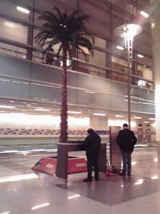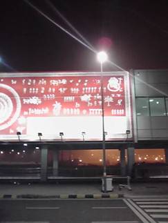 見上げても、ほとんどのパーツは普通の空港なんですけどね↓ 照明がUFO気取ってるけど(言いがかりです)。