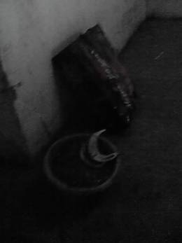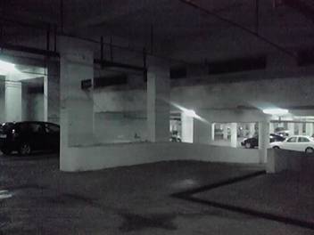 でもって、宅の地下↓ 夜中だから人気(ひとけ)ないなー。と見回すと、